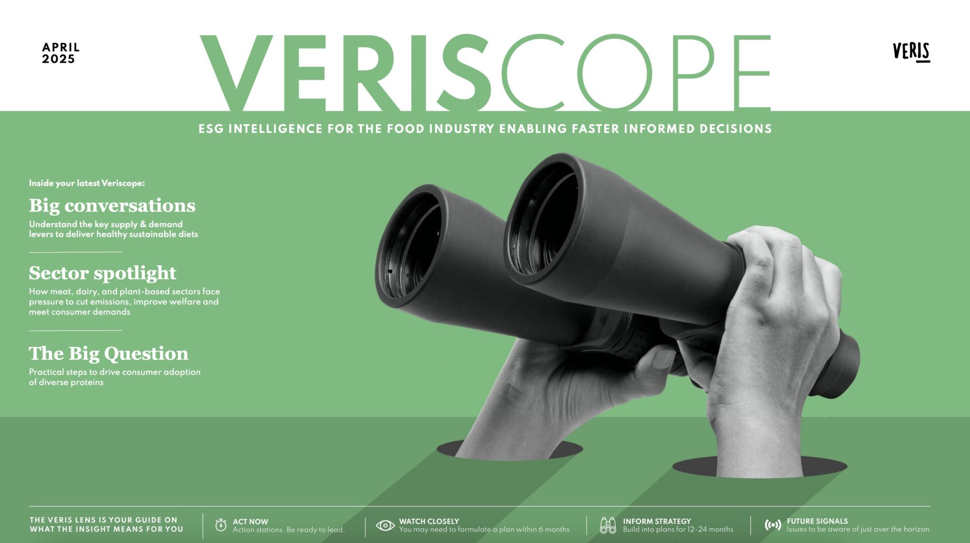 Everything is distilled through the unique Veris lens to guide your ambitions and actions for the year ahead: clearly indicating whether you need to Act Now, Watch Closely, use to Inform Strategy or be mindful of Future Signals.
